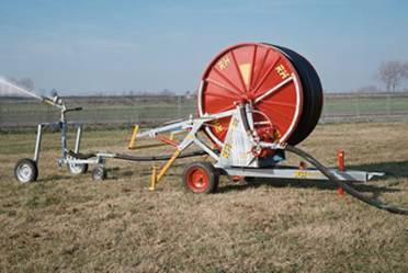 Мобильные поливочные установки завоевали признание и сейчас поставляются в 40 стран мира. На шасси мобильной установки крепится катушка со шлангом, заканчивающимся дождевальным аппаратом на тележке