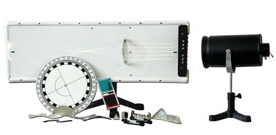Прибор предназначен для демонстрации: Законов отражения и преломления света, полного внутреннего отражения, предельного угла отражения, Преломления лучей света в пластине с плоскопараллельными гранями и при прохождении через призму,Преломления лучей света в линзах.Построения изображения предмета по двум точкам, не лежащим на главной оптической оси линзы или зеркала,Построения хода лучей в трубе Кеплера, трубе Галилея и в микроскопе.Прибор состоит из следующих основных частей и узлов: